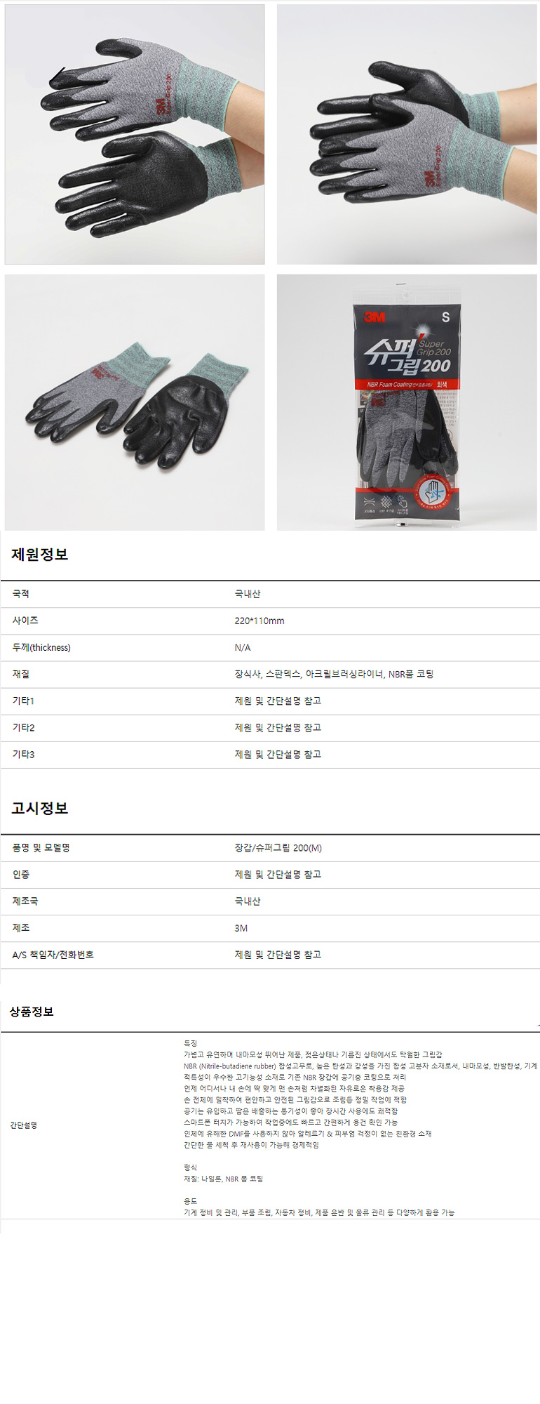 장갑 NBR 3M슈퍼그립200 M 작업용장갑 장갑 빨간장갑