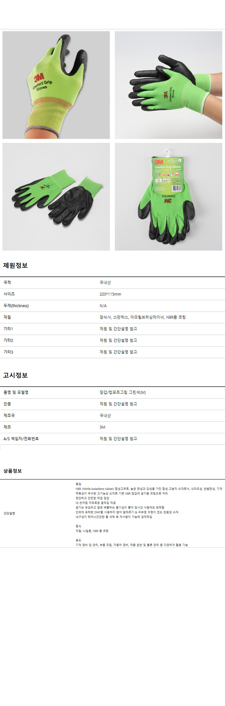 장갑 NBR 3M컴포트그립그린색 M 빨간장갑 안전장갑 목장갑