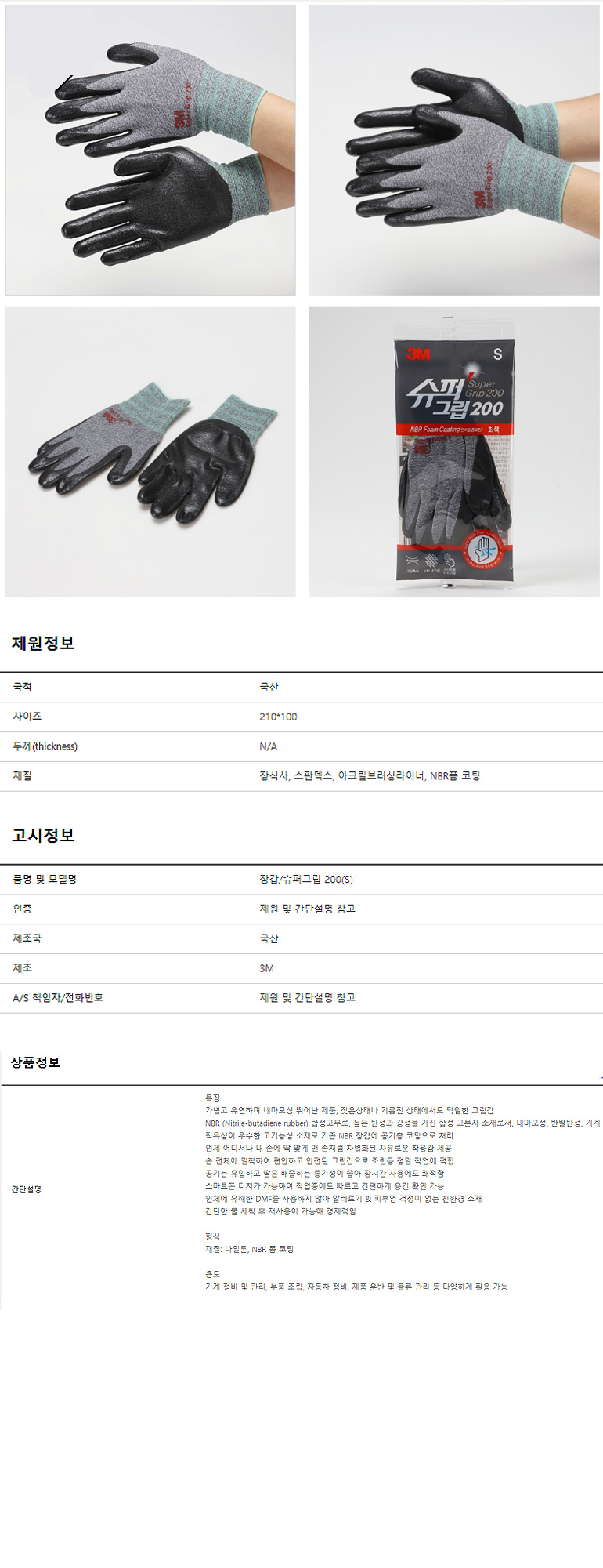 장갑 NBR 3M슈퍼그립200 S 작업용장갑 장갑 빨간장갑
