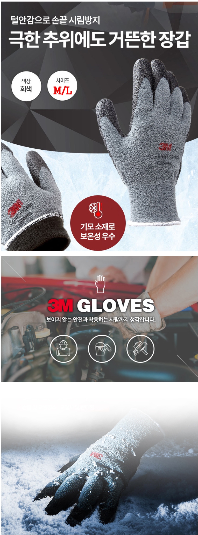3M 반코팅 장갑 작업 장갑 안전 글러브 보호구 기모