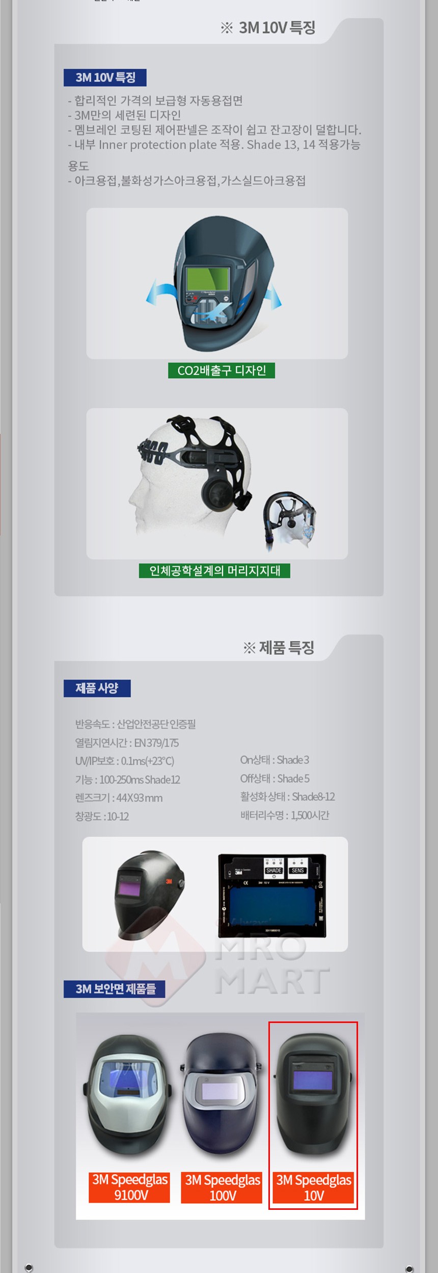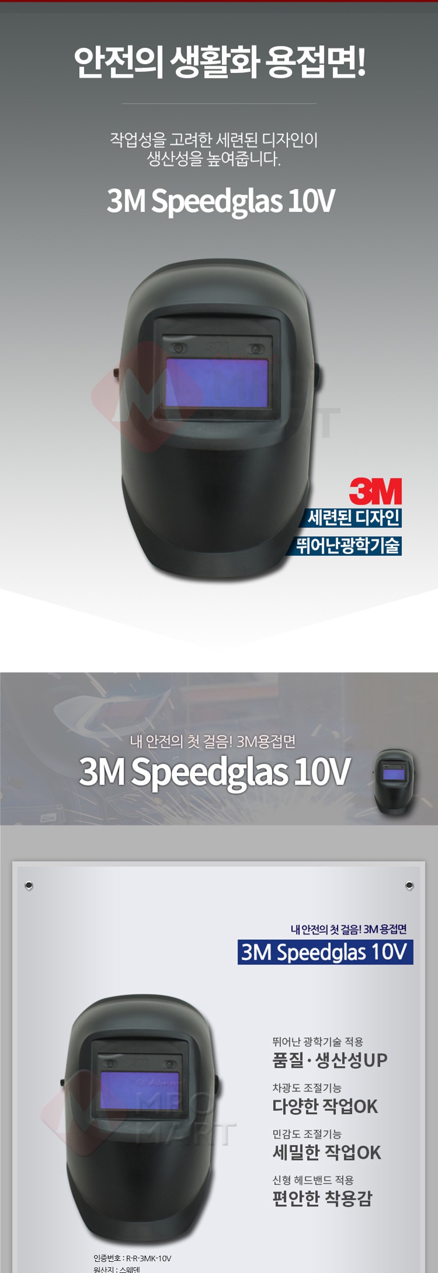 3M 스피드글라스 10V 자동용접면 용접마스크 용접마스크 용접보호 자동차광택 광택확인 안전