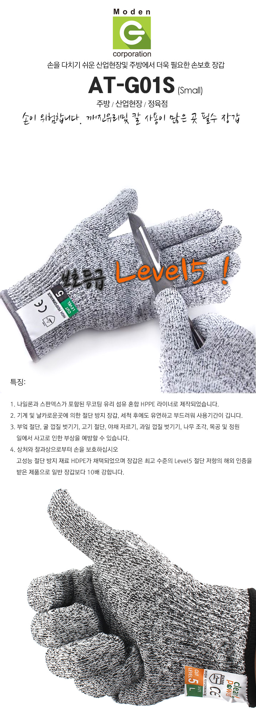 손베임방지장갑 AT-G01S S사이즈 특수코팅/보호작업용/손보호/유리/조리용/정육/육가공/ 이미지/