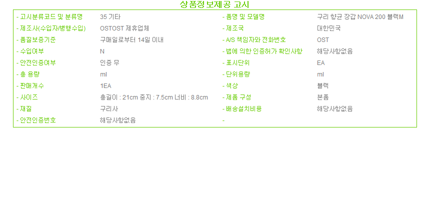 구리 향균장갑 노바200 블랙M 위생장갑 이미지/
