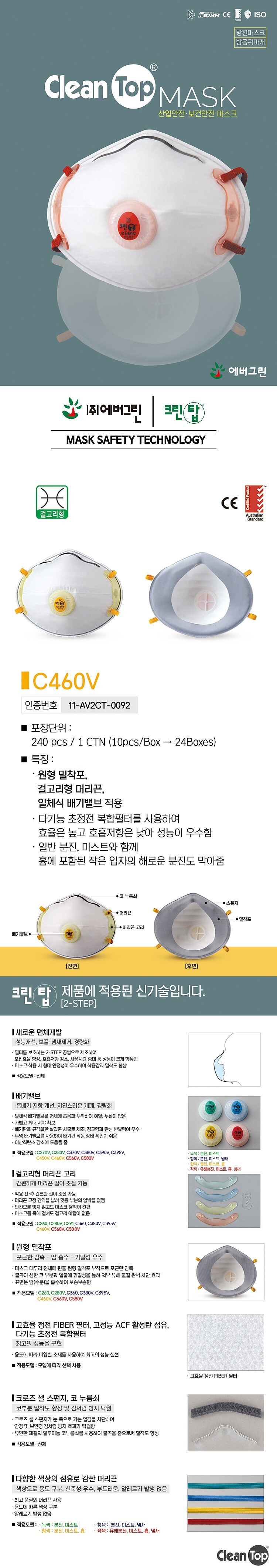 원형 밀착포 초경량 배기밸브 1급 방진마스크 240EA 이미지/