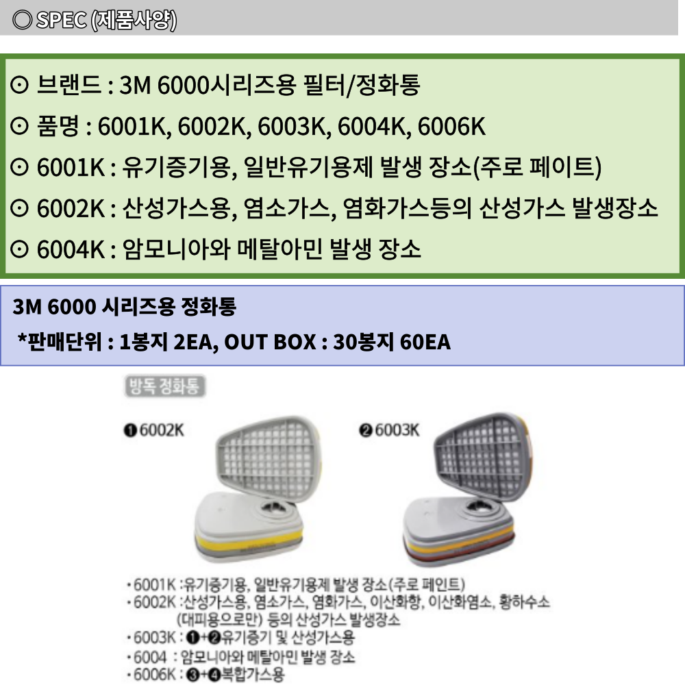 3M 직결식 마스크 6000 시리즈용 정화통 6004K