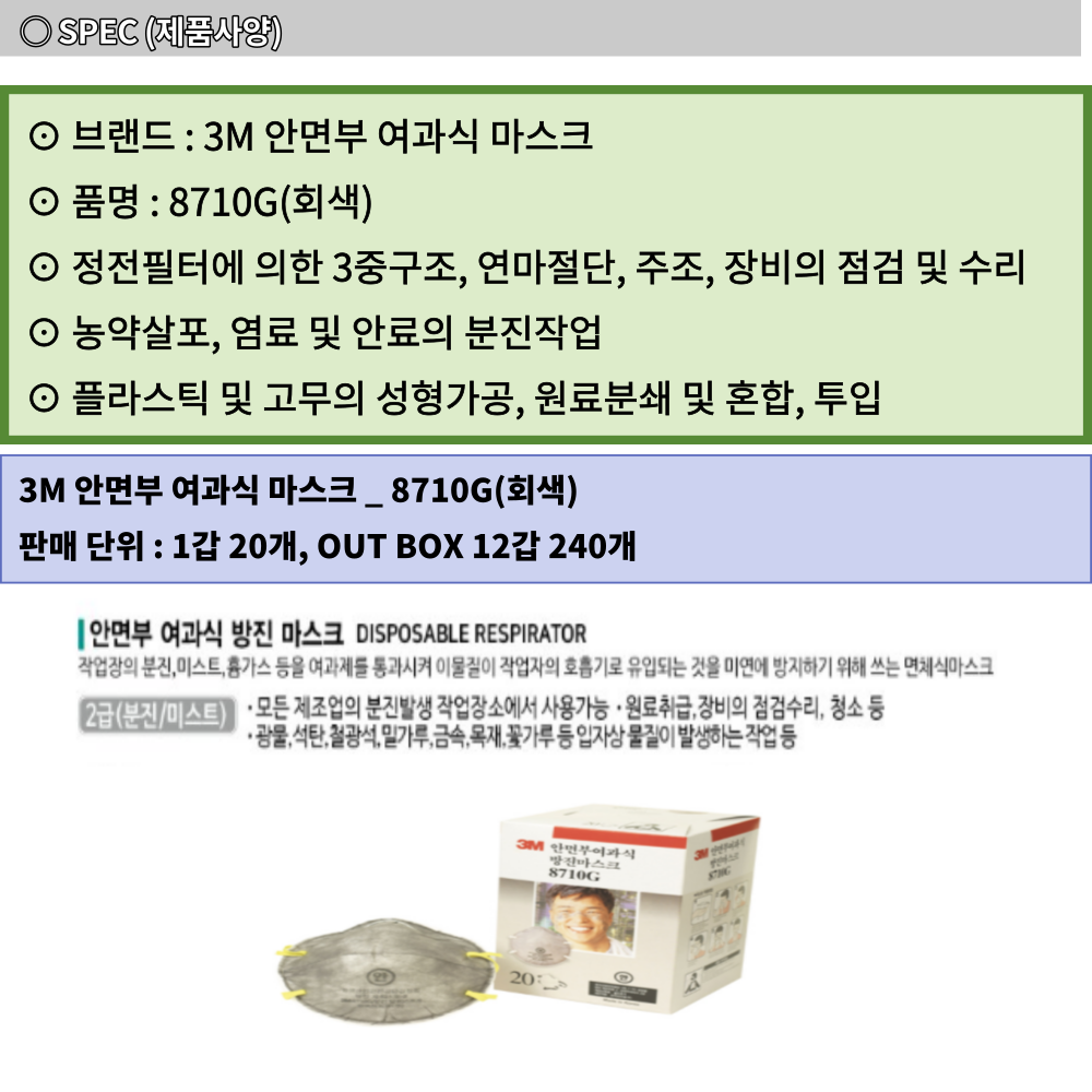 3M 분진 미스크 안면부 여과식 마스크 8710G