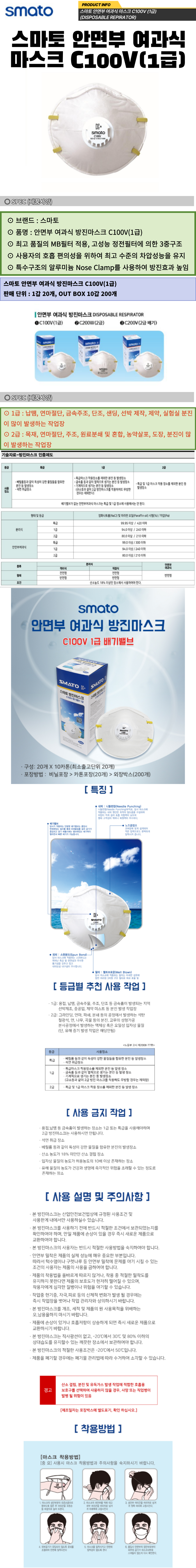 스마토 산업용 분진 안전 방진 1급 마스크 C100V 이미지/