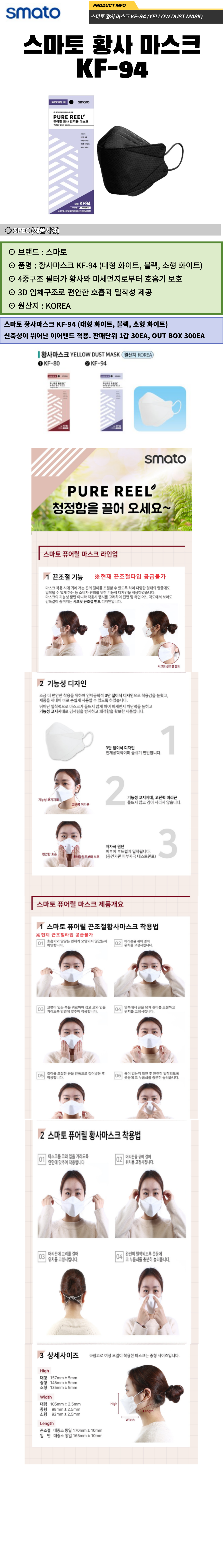스마토 안전 방역 환절기 미세먼지 황사 마스크 KF-94 대형 블랙 이미지/