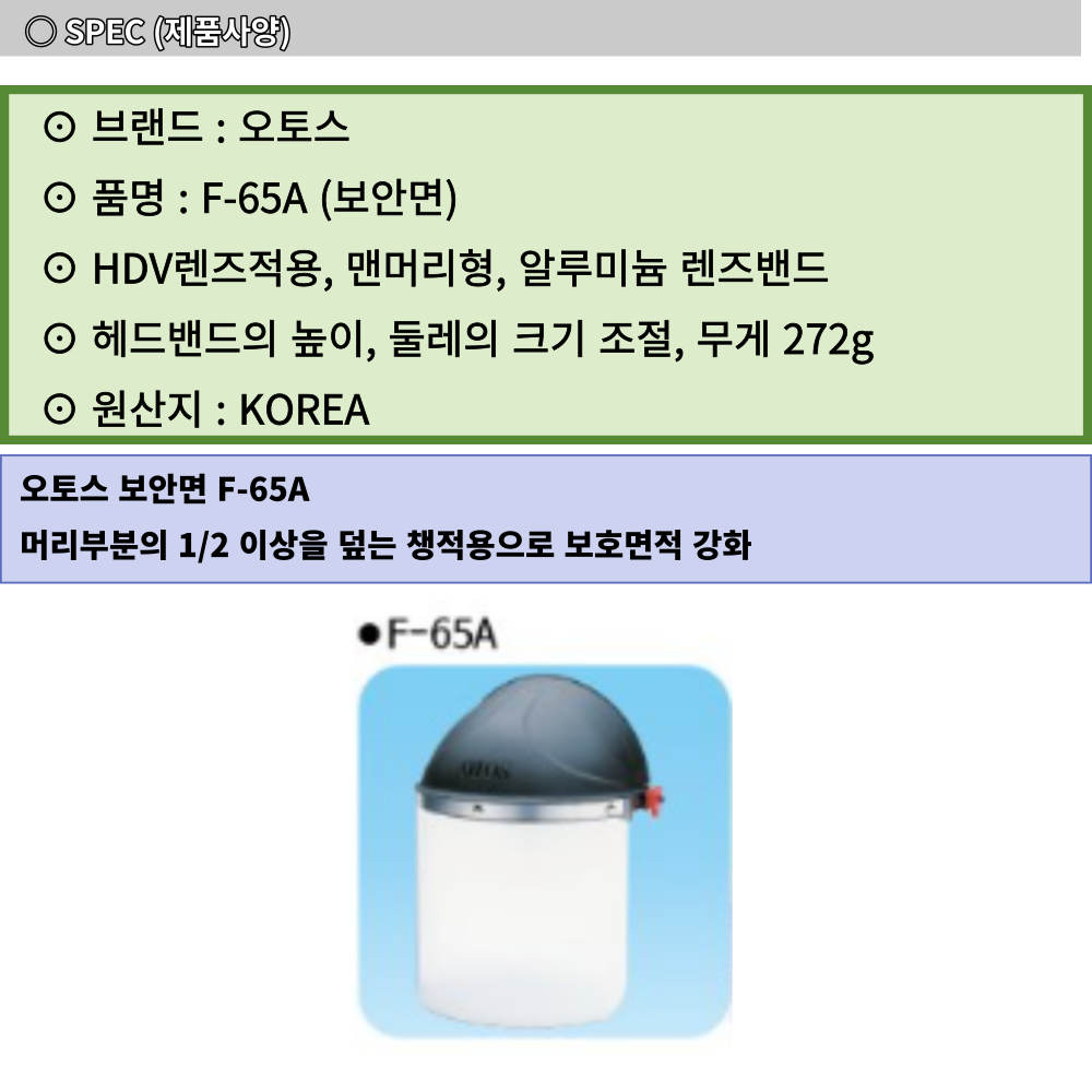 오토스 안면 보호 투명 용접 보안면 F-65A