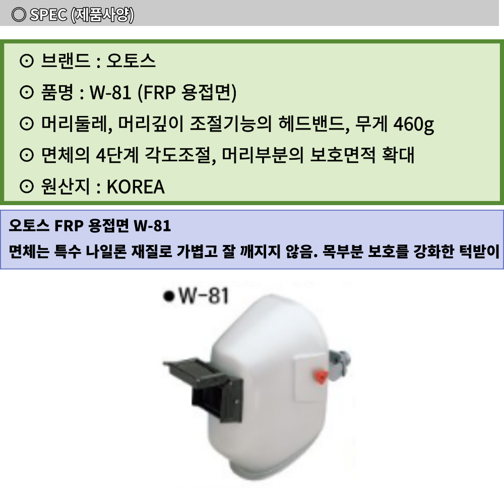 오토스 안면 보호 차광 FRP 용접면 W-81