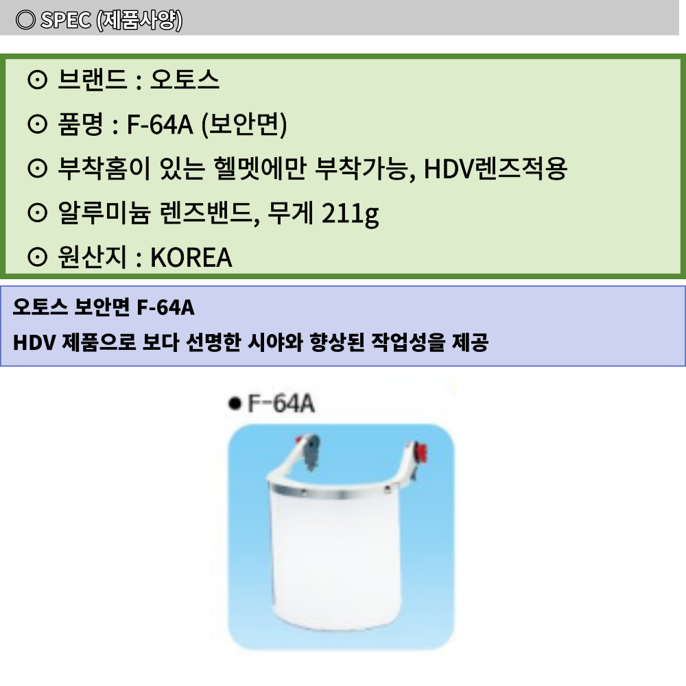 오토스 안면 보호 투명 용접 보안면 F-64A