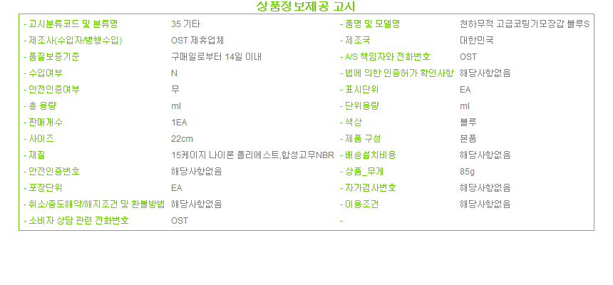 천하무적 고급코팅 기모장갑 블루S 코팅장갑 안전장갑 이미지/