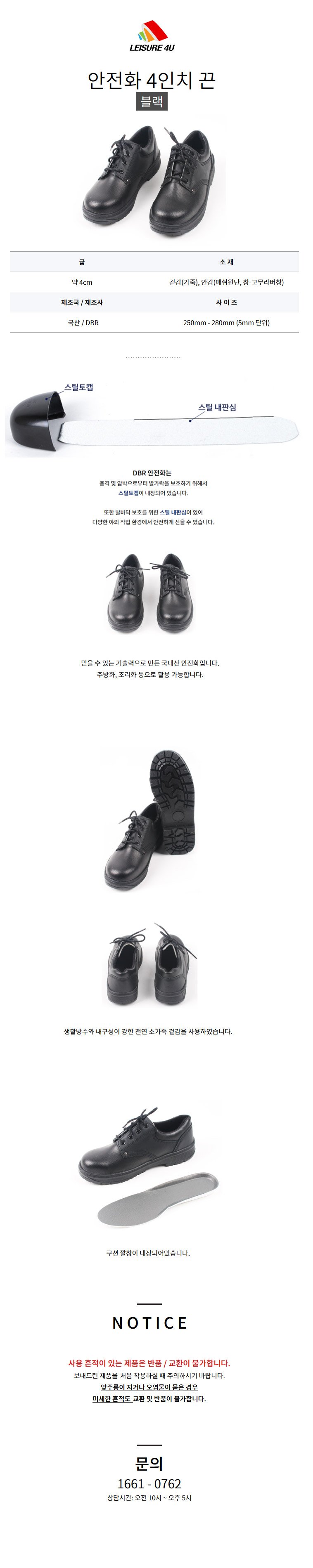 레저포유 국산 실속타입 안전화 작업화 끈 블랙