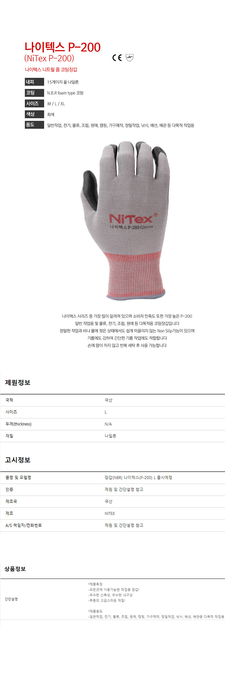 장갑P 200나이텍스니트릴폼코팅L 작업용장갑 장갑 빨간장갑