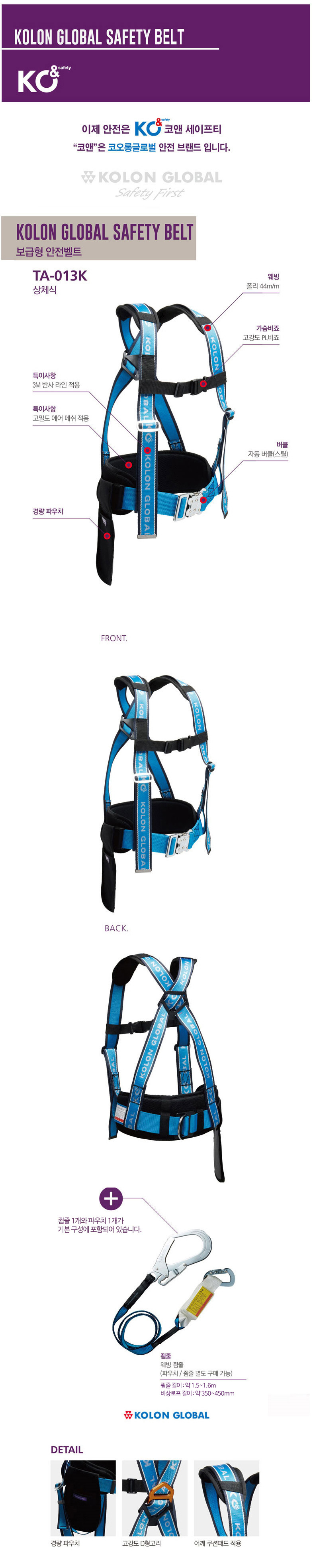 코오롱글로벌 상체식벨트 TA-013K 보급형 안전벨트 이미지/
