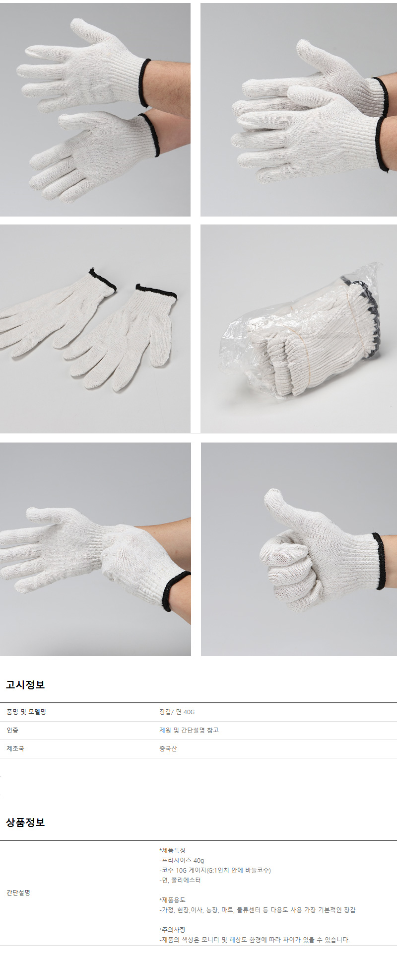 장갑 목장갑 비츠온 면40G 흑띠10개 빨간장갑 안전장갑 목장갑
