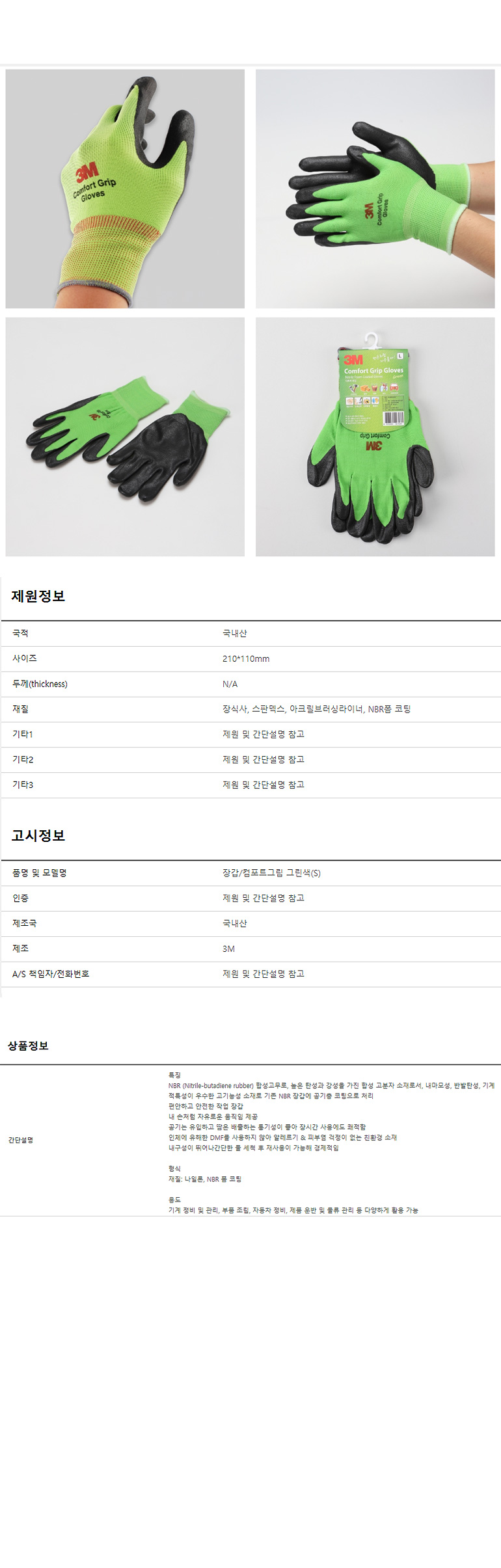장갑 NBR 3M컴포트그립그린색 S 빨간장갑 안전장갑 목장갑