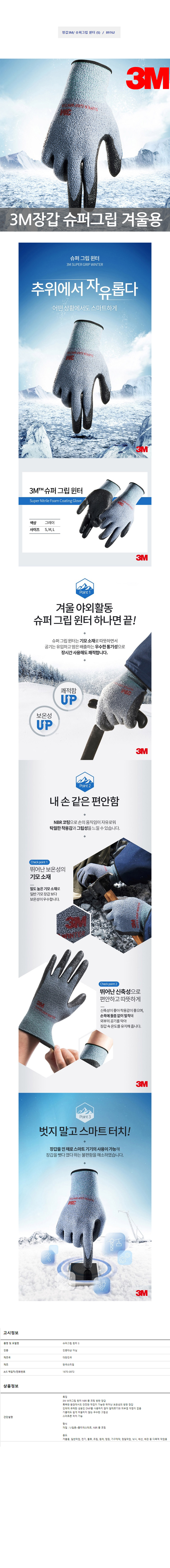 장갑3M슈퍼그립윈터 S 빨간장갑 안전장갑 목장갑