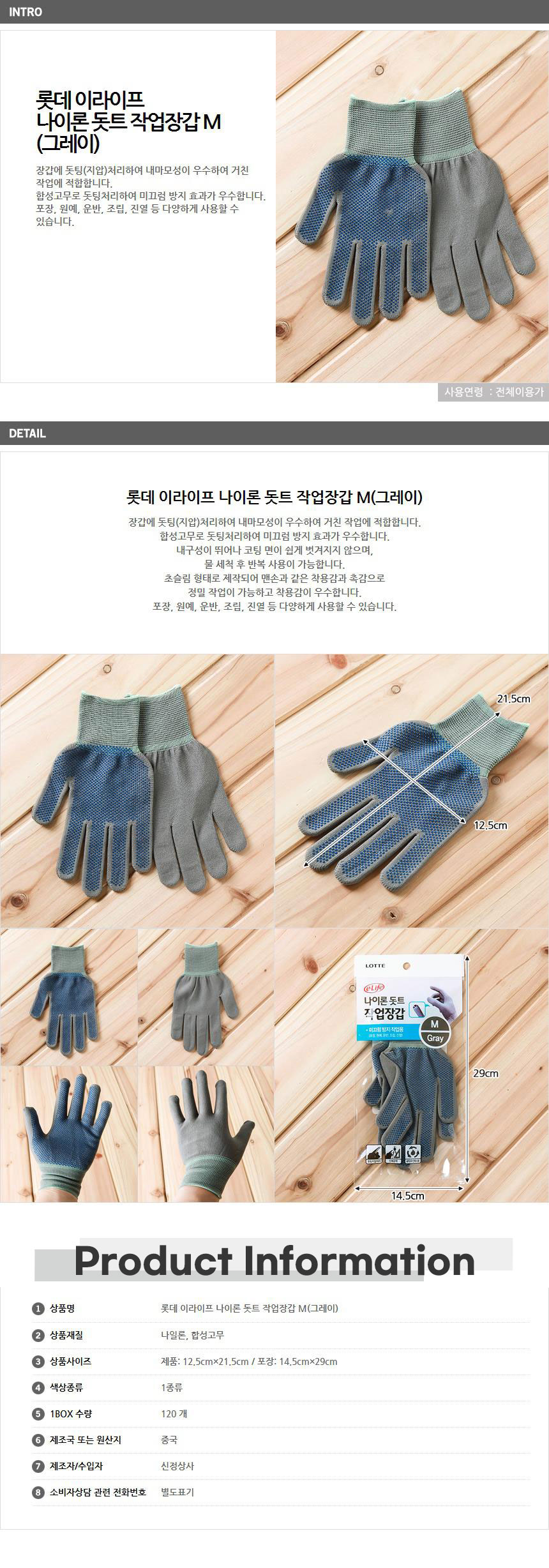 나일론 도트 작업장갑 그레이 M 등산장갑 공업용장갑