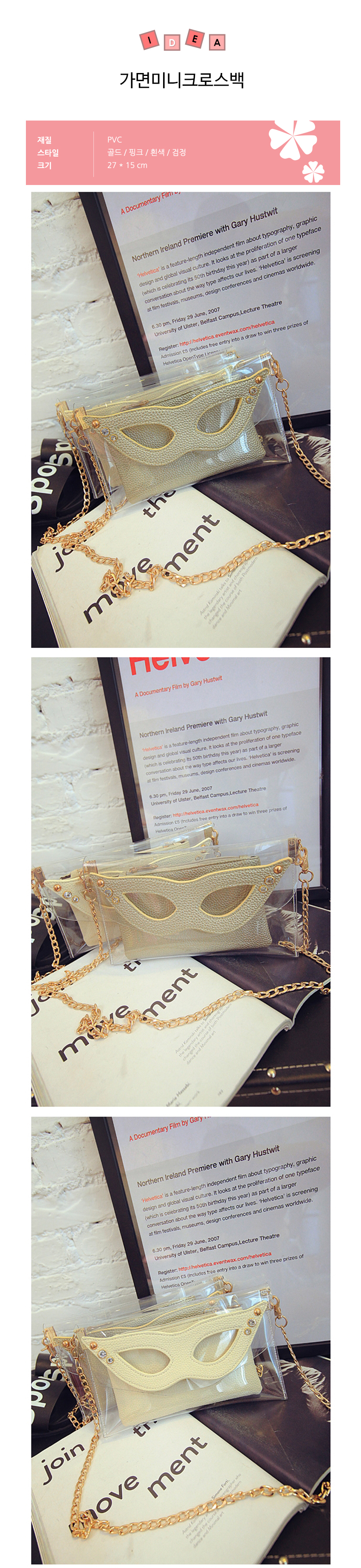 가면미니크로스백/투명크로스백 투명핸드백 미니백 이미지/