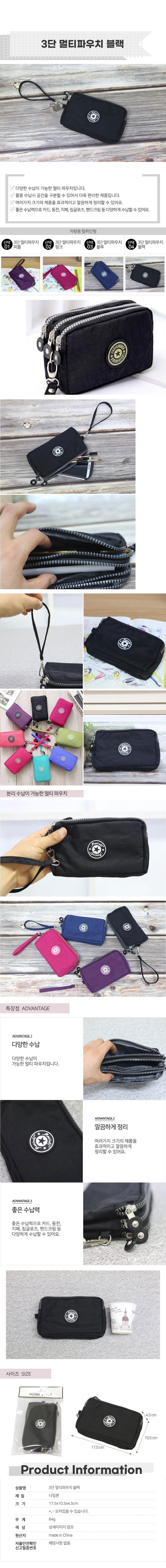 스트랩 3단 멀티파우치 블랙 화장품수납 수납력이좋은 이미지/