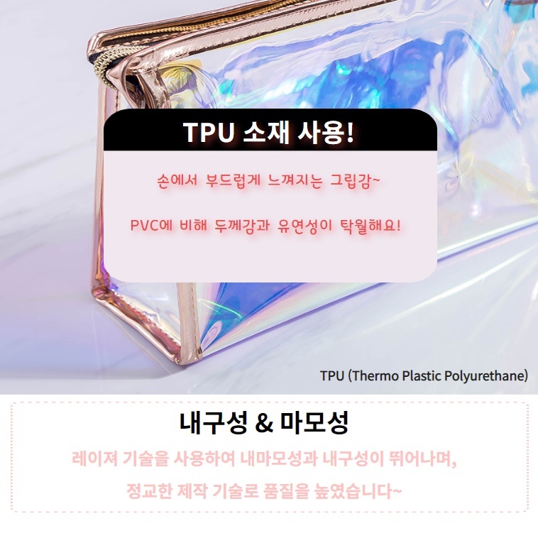 1. 종류 : 홀로그램 화장품 파우치 / 투명 파우치