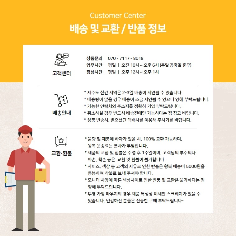 배송기간: 일반적으로 3~7일입니다. (도서산간지역은 약간 지연될 수 있습니다.)