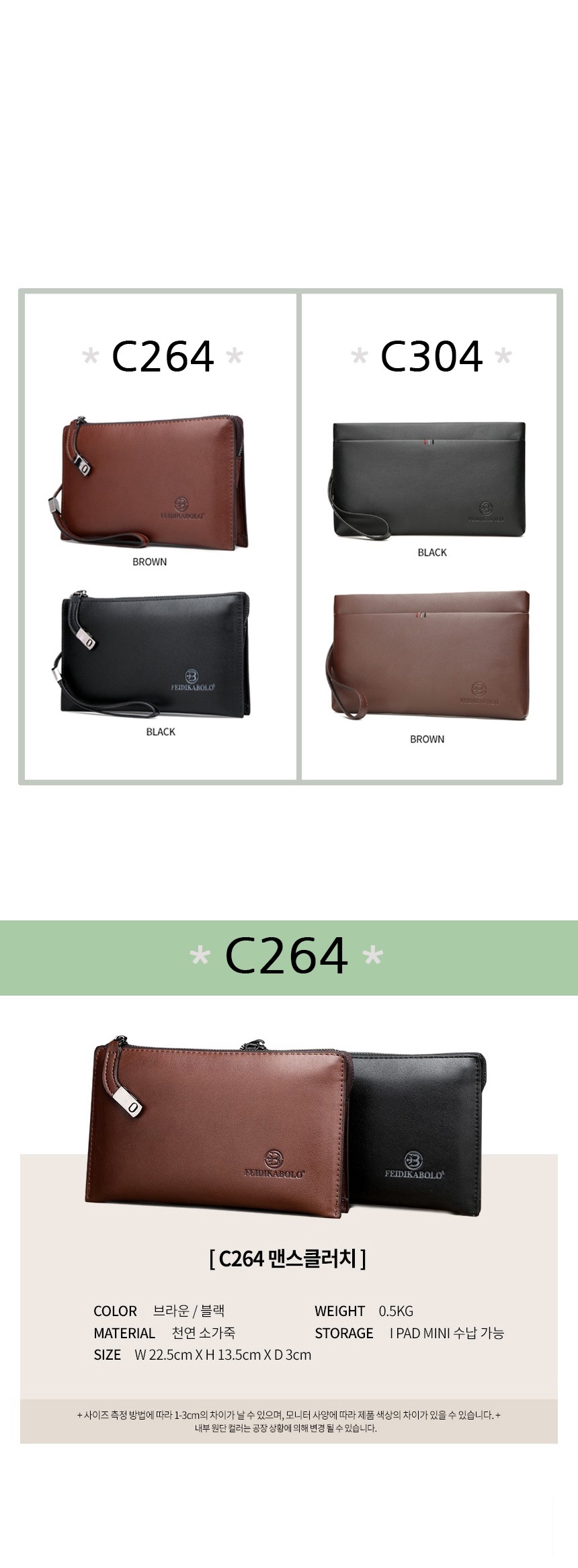 가방 클러치 세련된 패션 남자 데일리 심플 파우치백