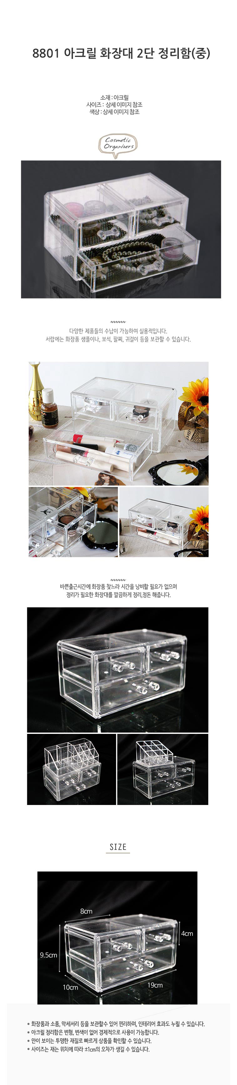 8801아크릴 화장대 2단 정리함 (중)/보석함/화장품서 이미지/