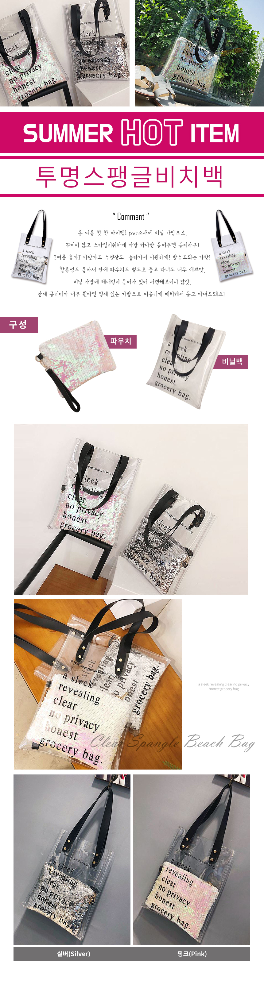 투명스팽글비치백 여행가방 투명가방 수영가방 여성백