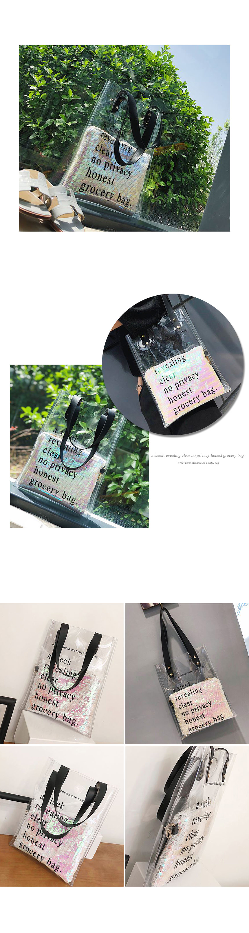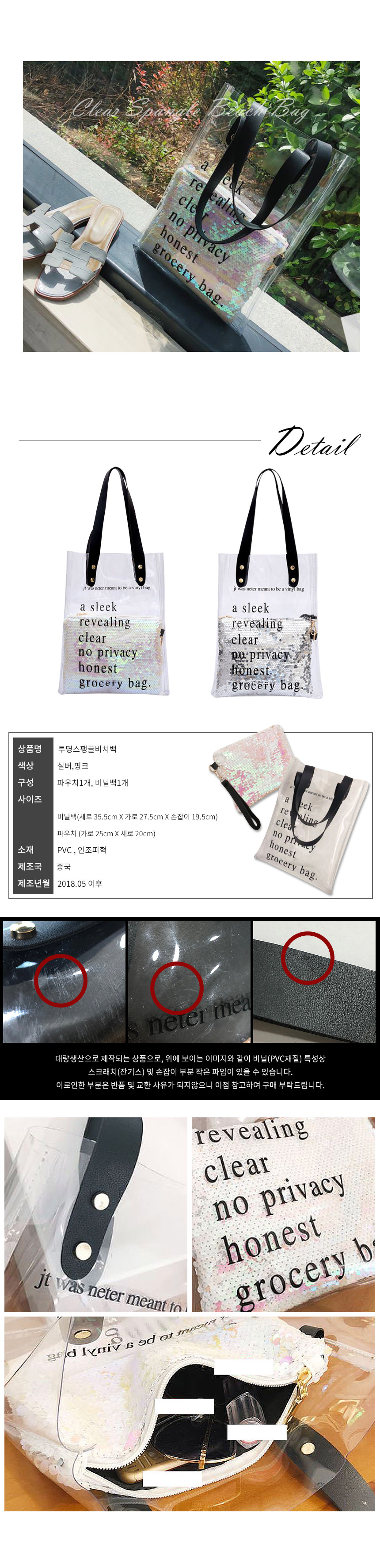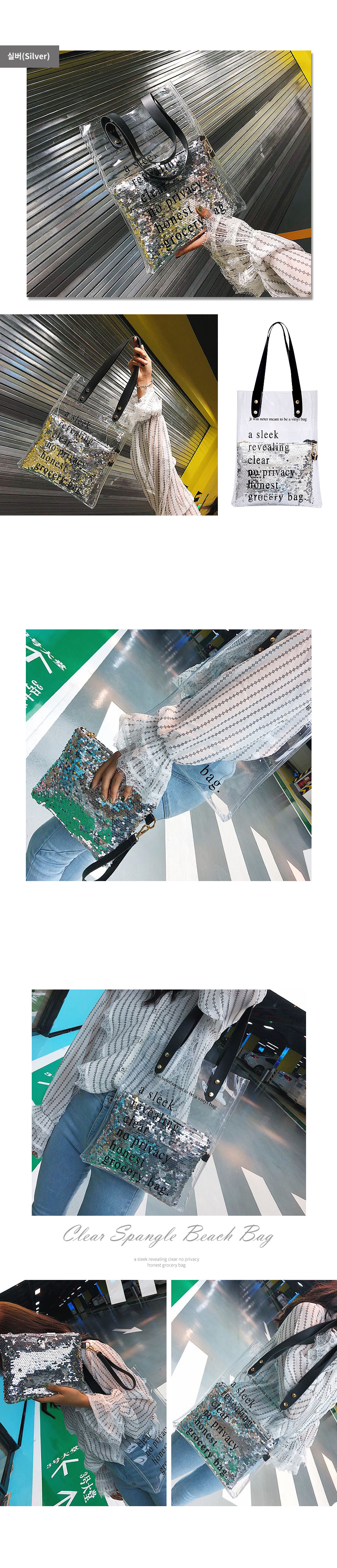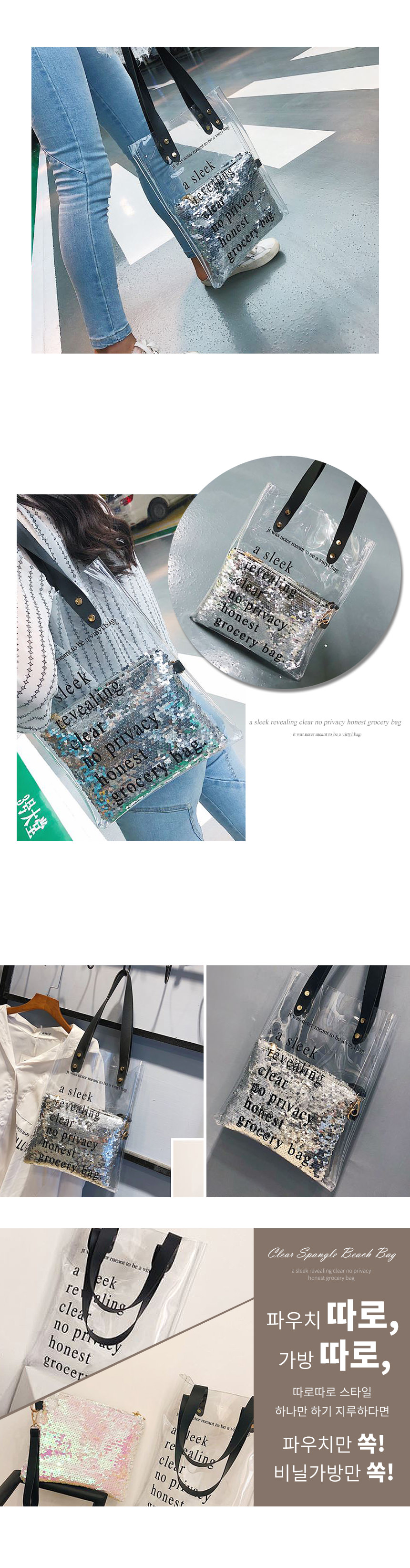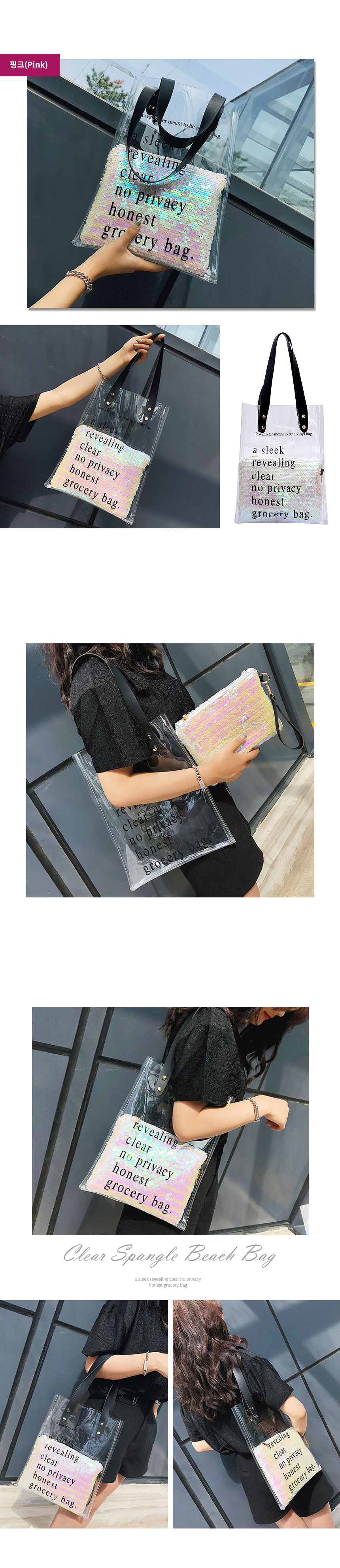 투명스팽글비치백 여행가방 투명가방 수영가방 여성백 이미지/