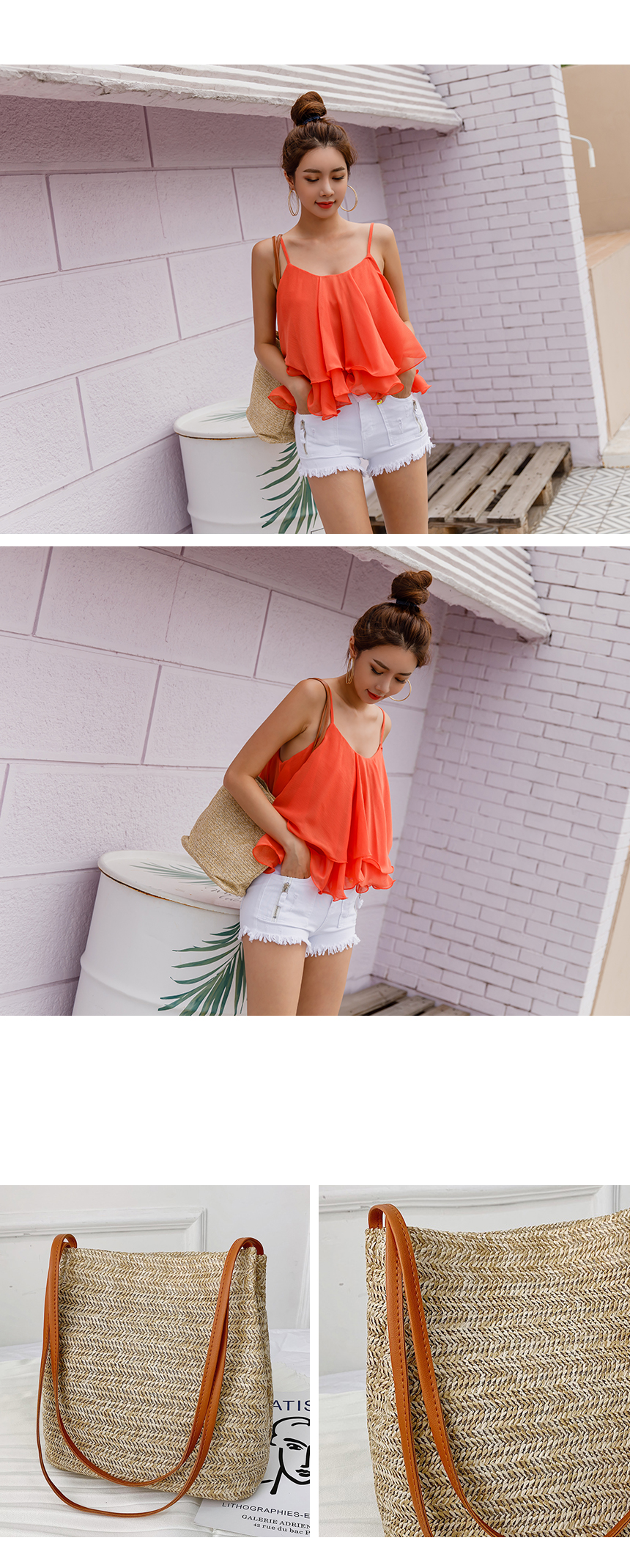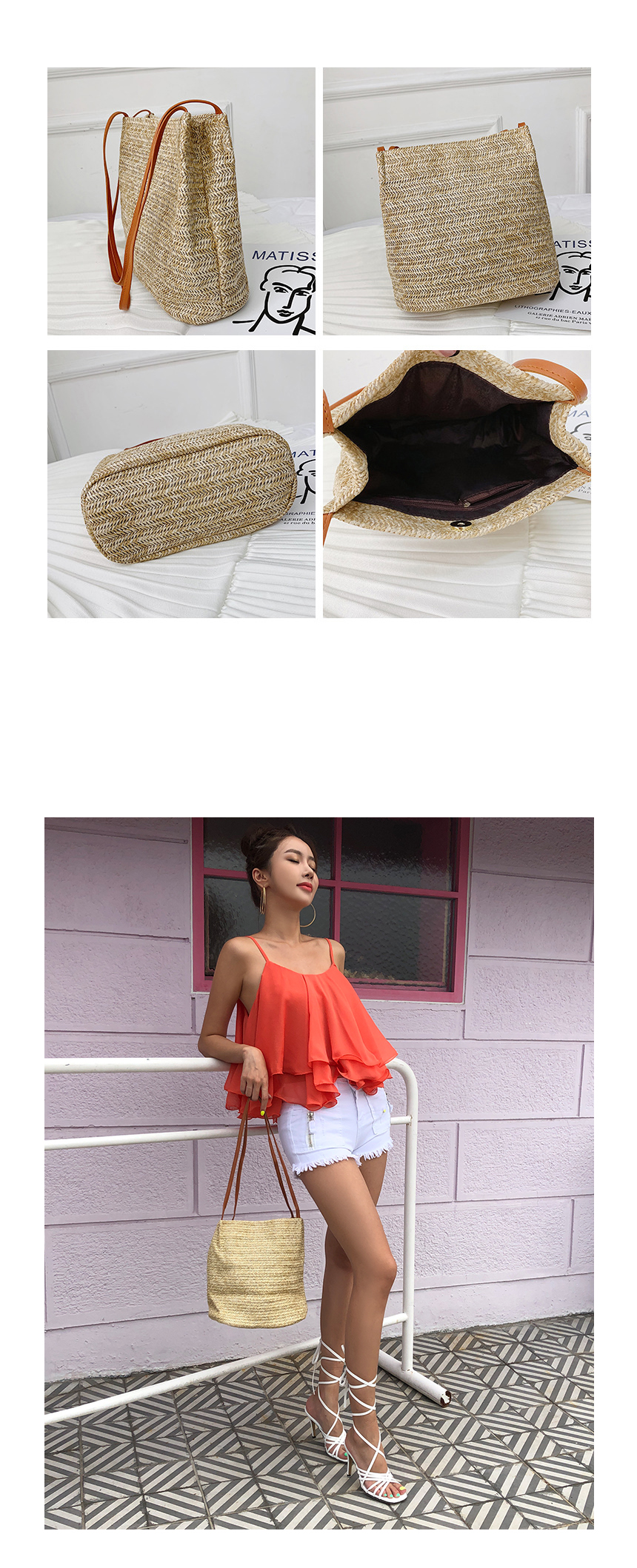 스퀘어라탄왕골백 밀짚가방 비치백 미니백 크로스백 이미지/