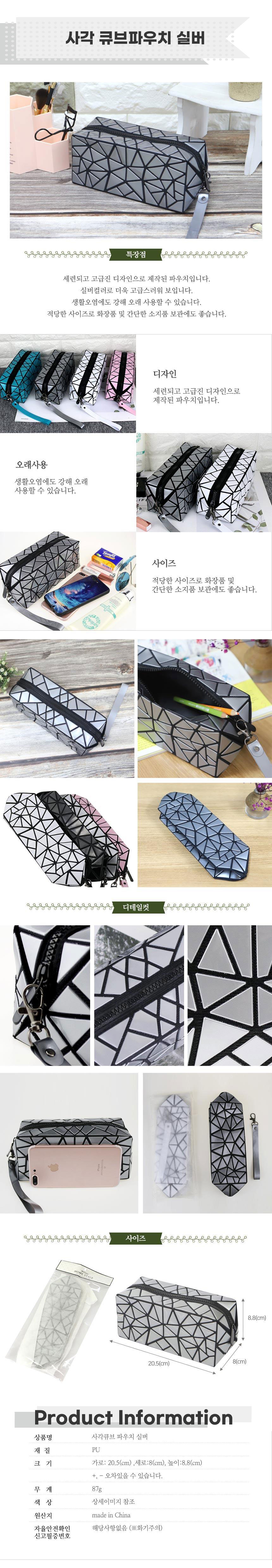 핸드스트랩 사각 큐브파우치 실버 이너백파우치 여성 이미지/