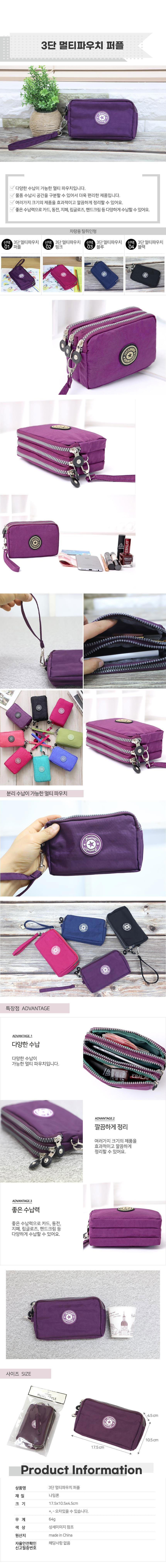 스트랩 3단 멀티파우치 퍼플 미용가방 파우치선물 이미지/