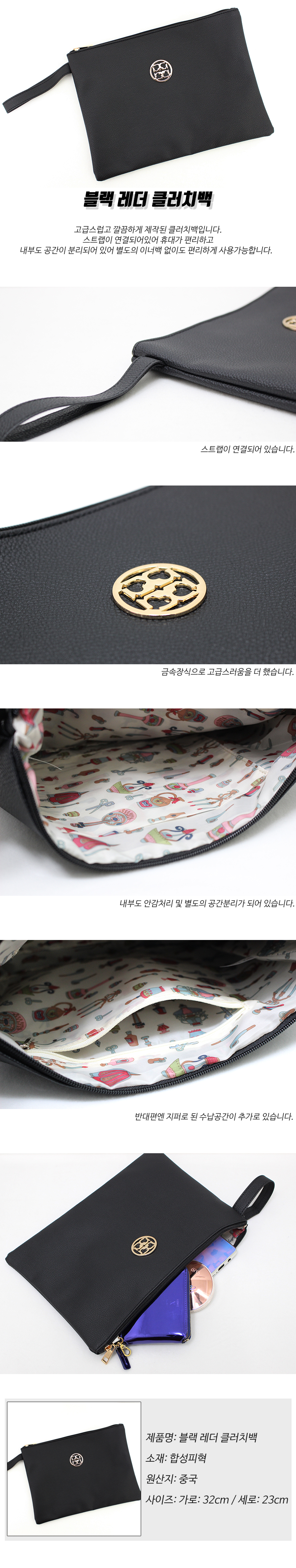레더 클러치백 여성가방 블랙 남여공용 미니백 이미지/