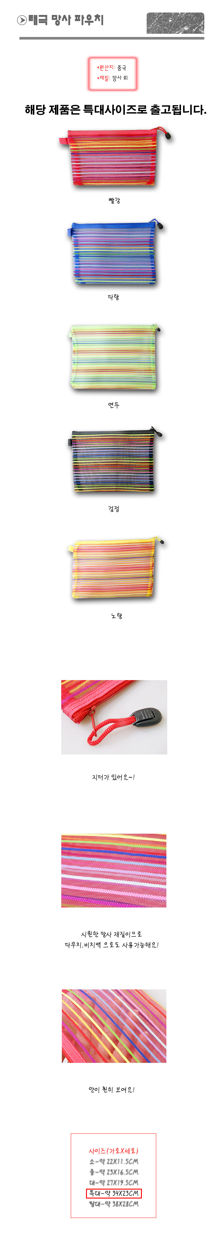 태극 칼라 망사파우치 특대사이즈