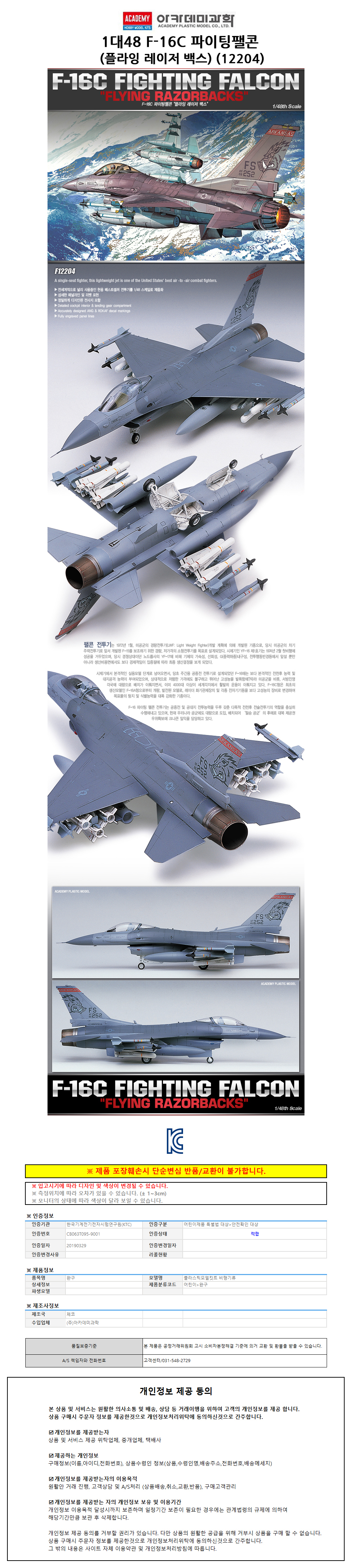 아카데미 1대48 F 16C 파이팅팰콘 (플라잉 레이저 백스) (12204) 이미지/
