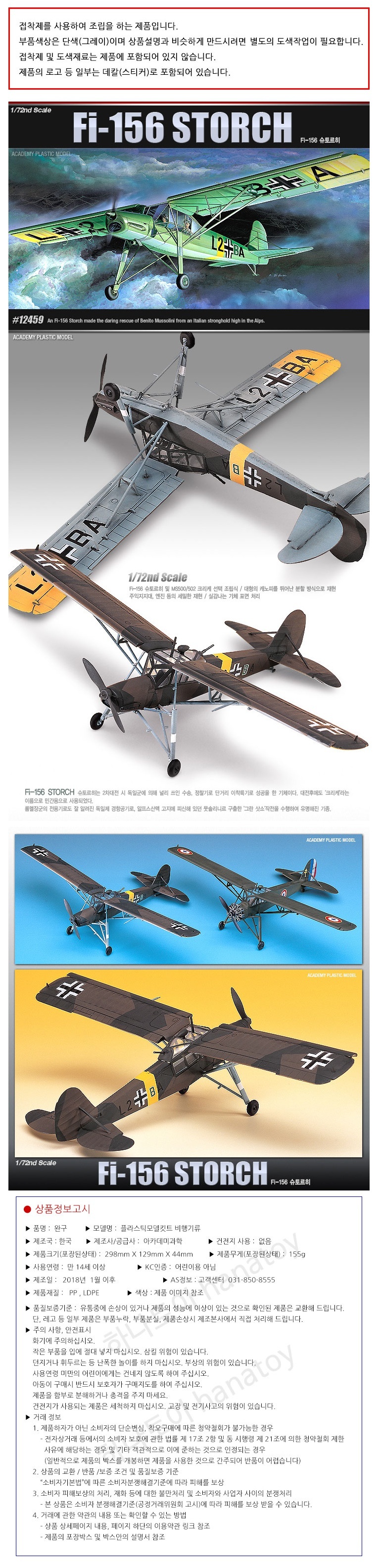 <상품명 : (아카데미과학) Fi 156 슈토르히 1/72 12459 프라모델>