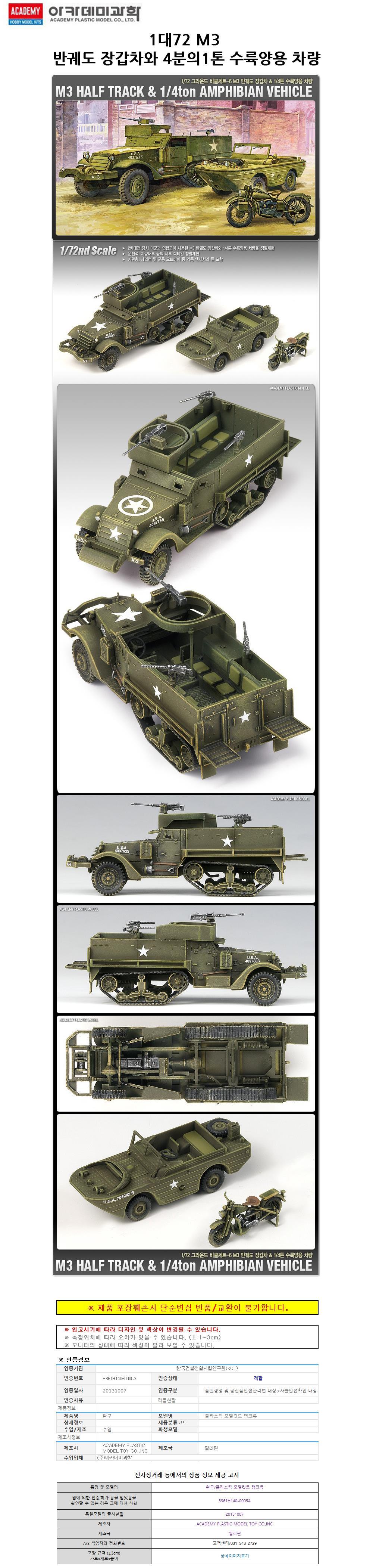 장갑차와4분의1톤 수륙양용차량 반궤도 M3 프라모델 이미지/
