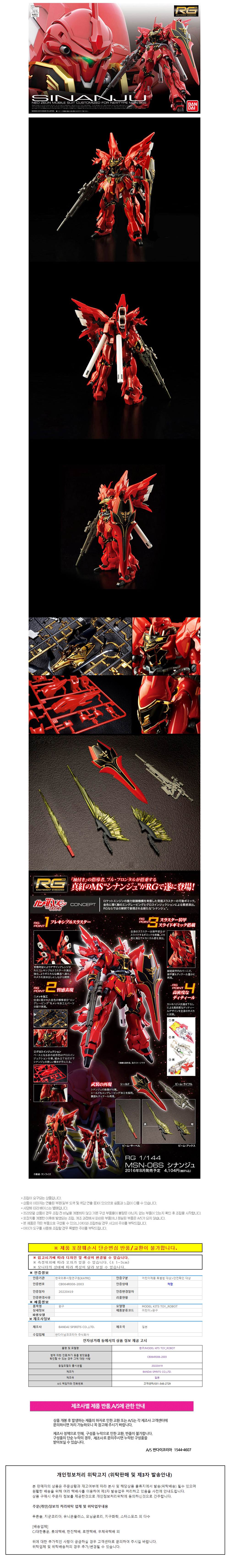 반다이 (RG22) 1/144 MSN-06S 시난주 (SINANJU) (BD207590)