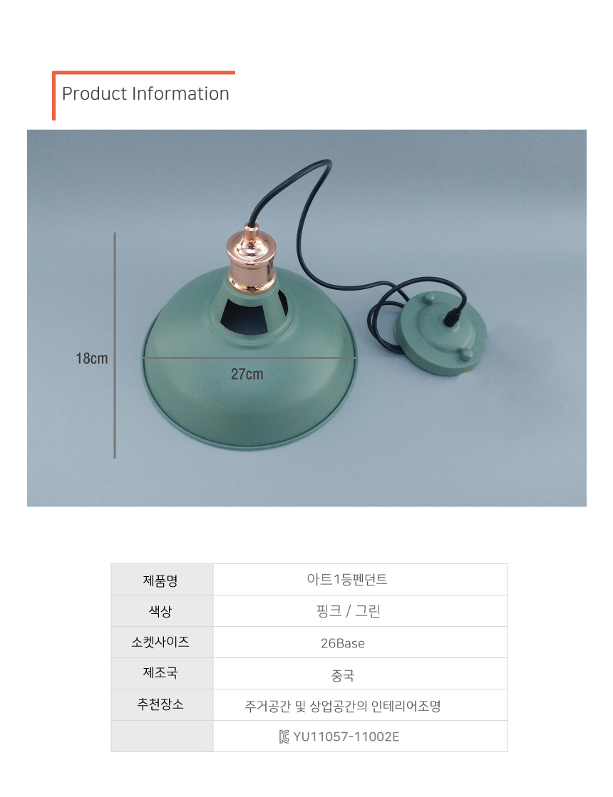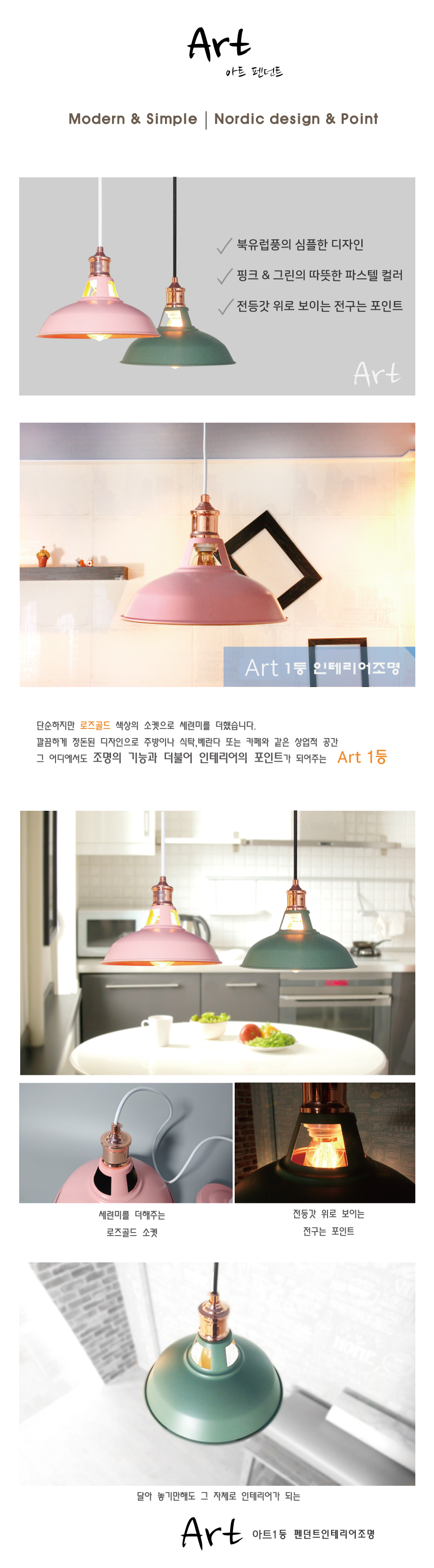 인테리어조명 아트 1등 펜던트(E26) 그린/핑크