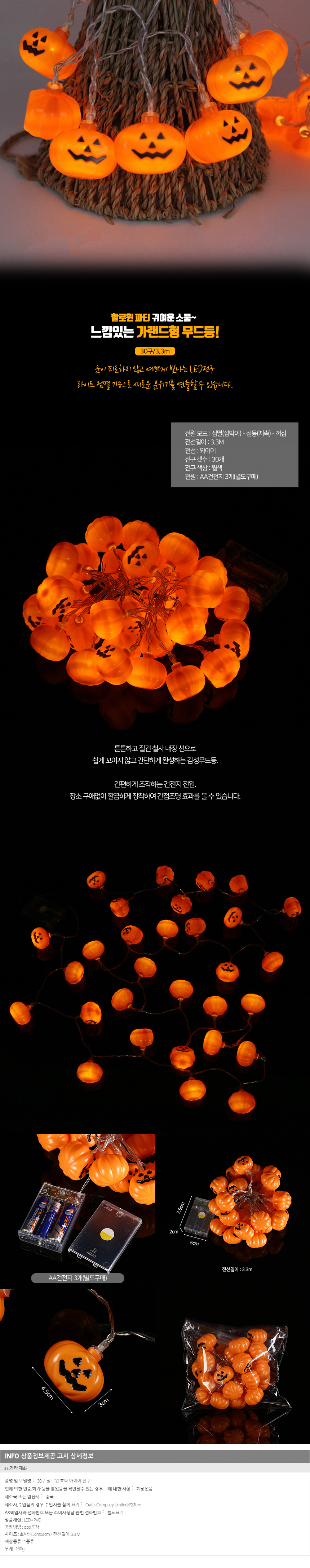 LED 호박 와이어 전구 30구 무드등 (웜색 3.3M) 이미지/