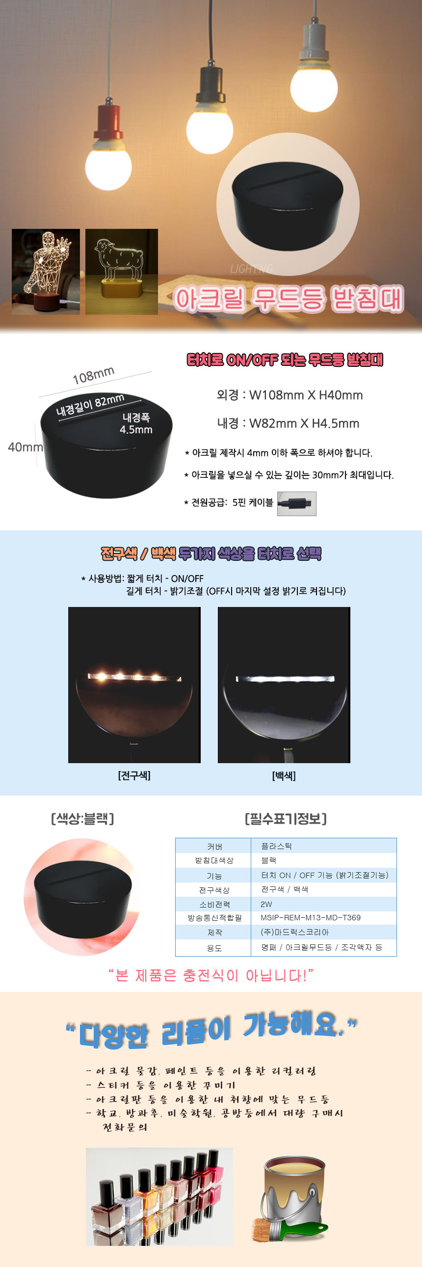 • 품명 및 모델명LED 아크릴 원형 무드등 받침대