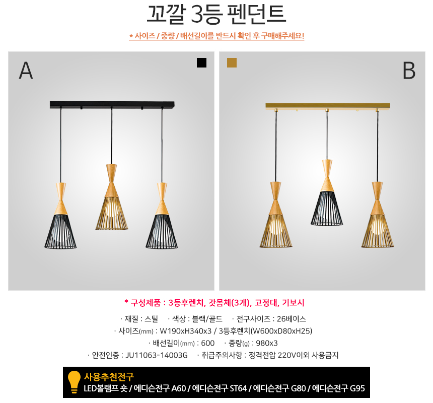 • 품명 및 모델명꼬깔 3등 펜던트