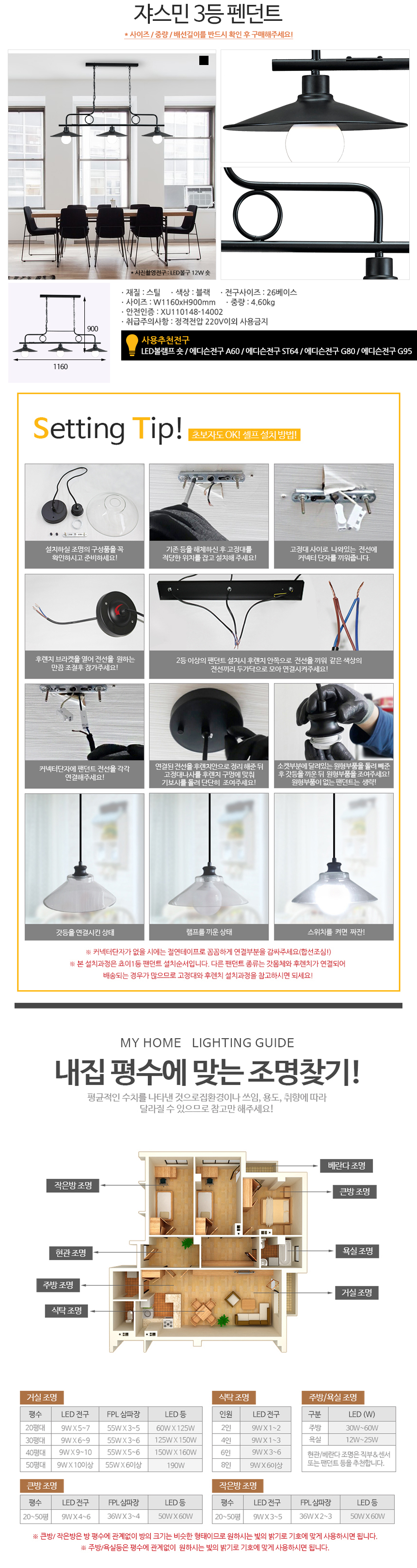 쟈스민 3등 펜던트/인테리어조명/식탁등/회의실조명/카페등/조명 이미지/