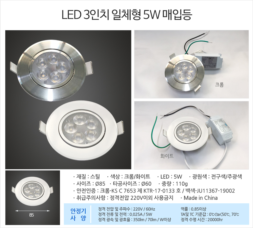 • 품명 및 모델명LED 3인치 일체형 5W 매입등