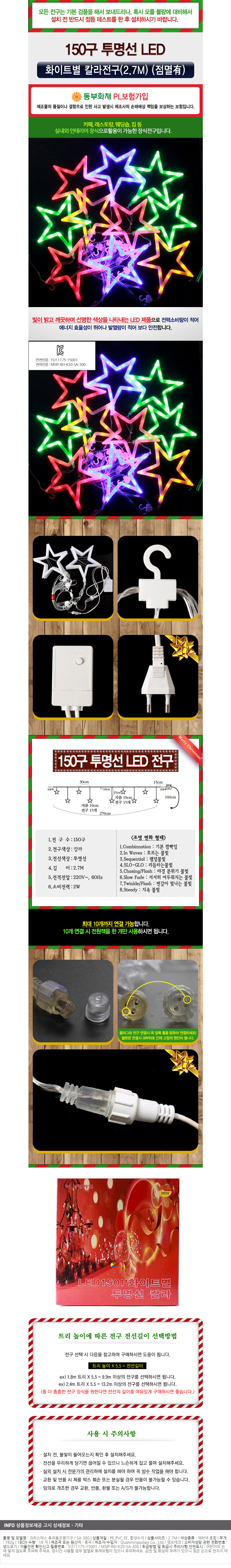 150구 투명선 LED 화이트별 칼라전구(2.7M) (전원잭포함) (연결가능) 이미지/