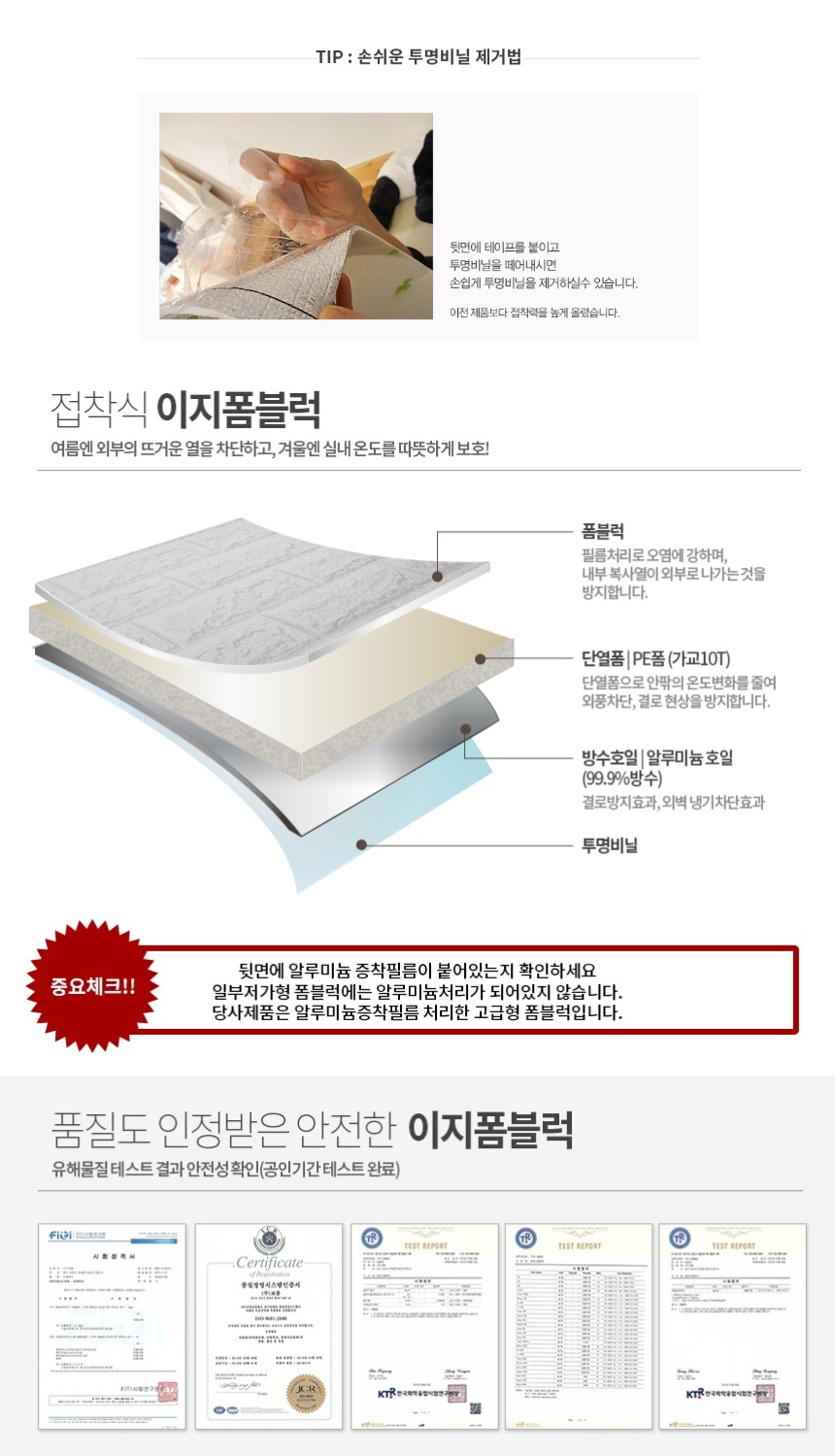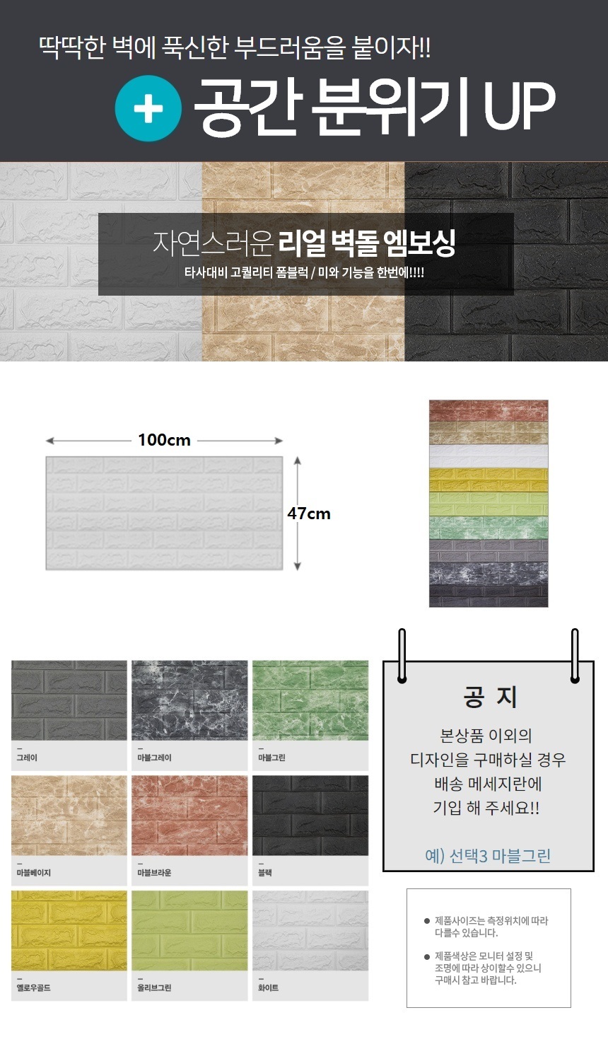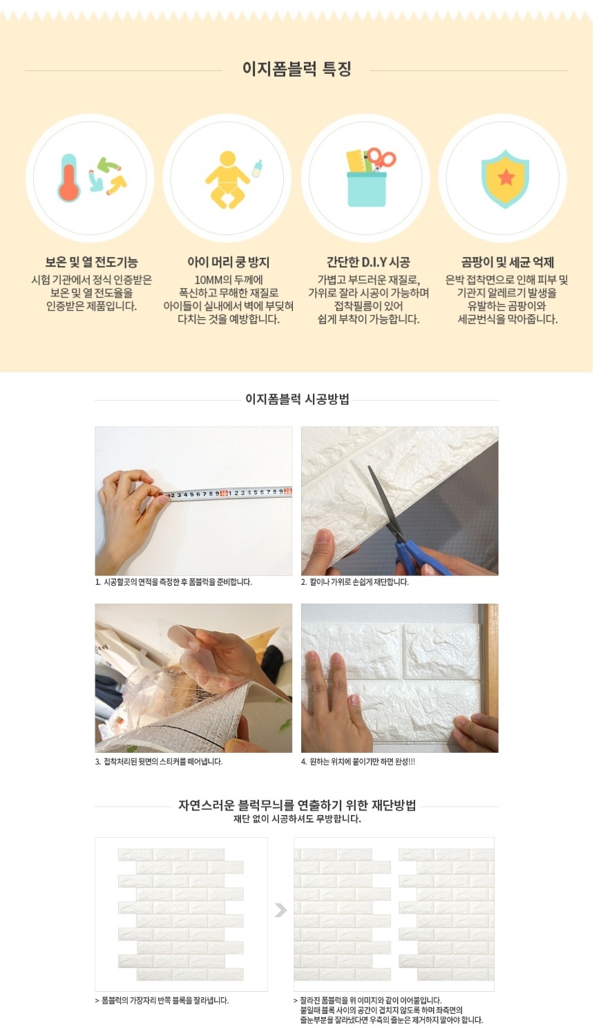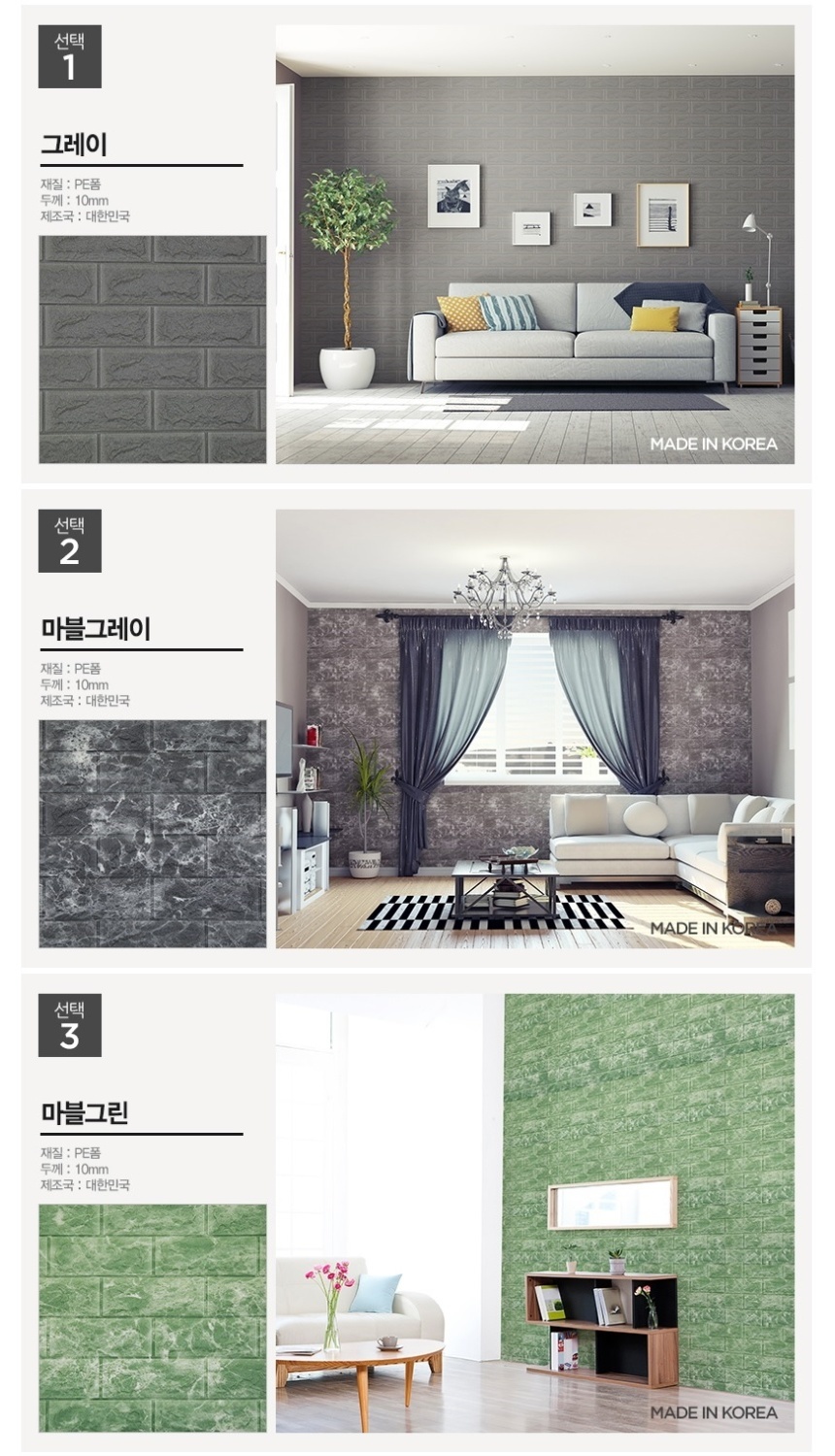 보온 보냉 단열 폼블럭 접착식 타일 벽돌 벽지 그레이 100X47cm 10장 이미지/