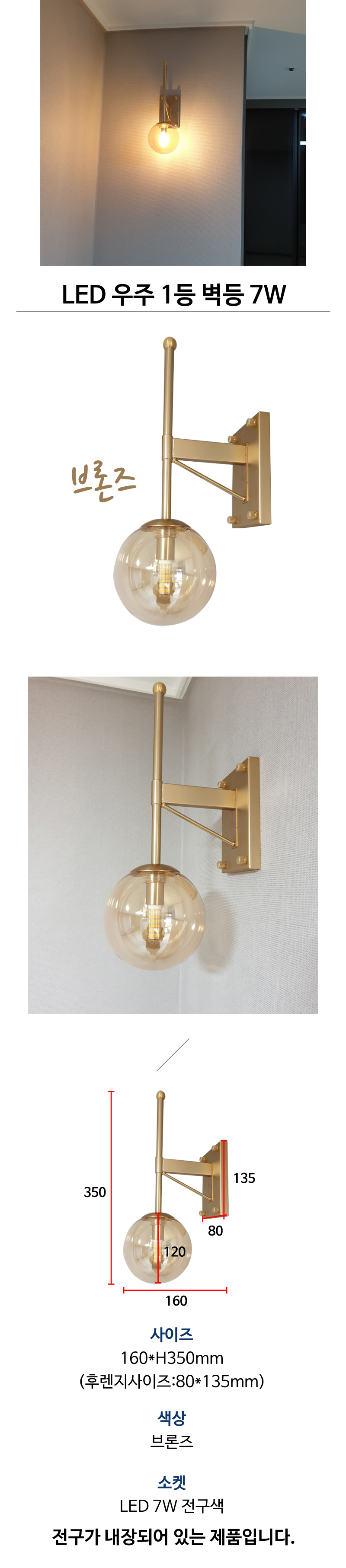 • 품명 및 모델명LED 우주 1등 벽등 7W-브론즈