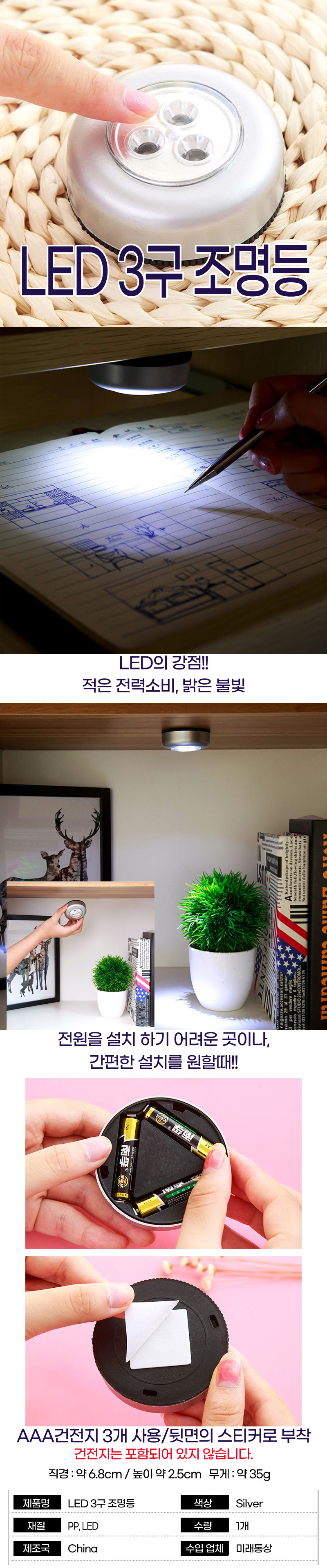 LED 3구 조명등/후레쉬/조명/코드프리조명/미니조명/mini조명/핀조명 이미지/